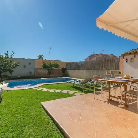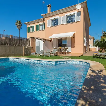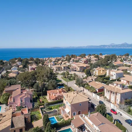 Cala Maiorisから3.4km離れた所に位置するベッドルーム2室のCasa Las Bahias Villa With Pool リュックマヨールは、庭園の眺めを望むテラスを提供しています。